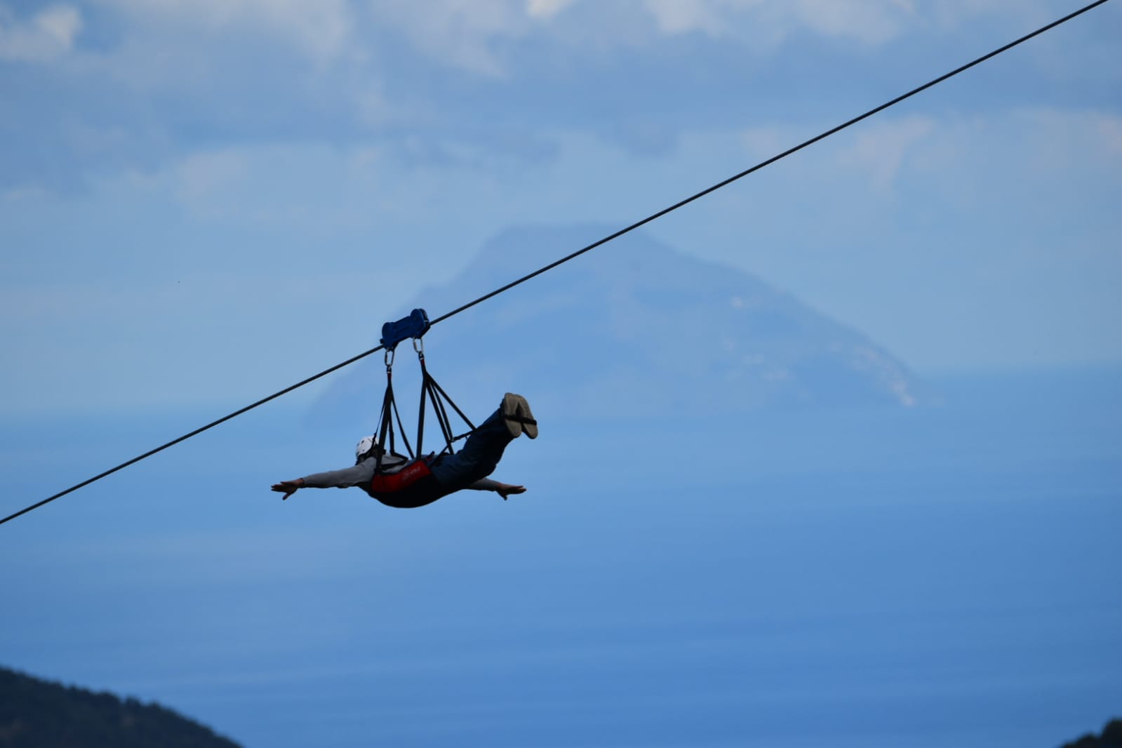 1600 metri di fune d’acciaio collegano il punto di partenza a quota 925m al punto di arrivo posto 260m più in basso, con un’altezza massima dal suolo di 300m. La velocità massima raggiunta durante il “volo” è di circa 130Km/h. In presenza di scirocco la velocità aumenta ancora, rendendo la nostra Zipline la più veloce in Italia!